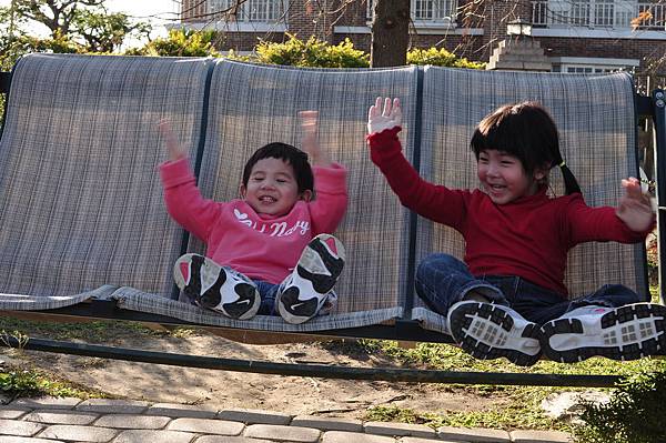 而且很多語句只要跟他說過一次,他馬上就會學起來,下次就會自己拼湊在句子中,有時候他自己故意在那邊耍寶,也會用手摀住嘴巴說自己好好笑~像是前幾天他還問了我"為甚麼?",我想我慘了,他該不會開始要打破砂鍋問到底了吧?媽媽可能會難以招架啊!現在他也已經可以跟妞妞姊姊對話,兩個常常一搭一唱的,已經可以一起玩了,有時他還讓妞妞姊姊餵他吃飯,跟著胡鬧,但兩個小人也很愛搶玩具,搶輸的希希老愛唉唉叫,真是兩個小冤家…